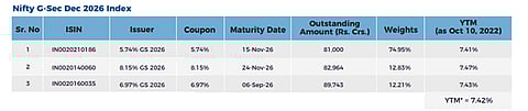 Table showing NSE Nifty G-Sec Dec 2026 Index Portfolio it will take.