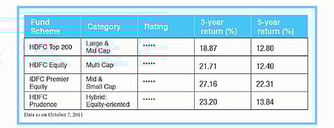 I have been investing in mutual fund with investments worth Rs 4.5 lakh. I have been investing through monthly SIPs of Rs 8,000 in HDFC Top 200, Rs 4,000 in HDFC Equity, Rs 3,000 in IDFC Premier Equity and Rs 5,000 in HDFC Prudence. My financial goal is to accumulate Rs 20 lakh for my child’s education in 7 years and Rs 50 lakh in 16 years. Please advise any changes to be made considering core and satellite approach as I can invest additional Rs 5,000