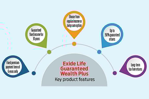 Exide Life Guaranteed Wealth Plus offers up to 350 per cent guaranteed returns and comes with two variant options - income and lump sum. Under the income, you can pay premiums for six years and avail guaranteed fixed income payout for 30 years. On maturity, you also receive 100 per cent of the premiums paid. This is a lucrative option if you want to provision for an additional stream of income to meet future goals. Under the ‘lump sum’ variant, after paying premiums for six years, you can avail of the maturity benefit as a lump sum at the end of the policy term (12 or 15 years). The product offers continuous life cover throughout the income payout period further strengthening the protection-cum-returns proposition. It offers an Internal Rate of Return (IRR) of up to 6.31 per cent.