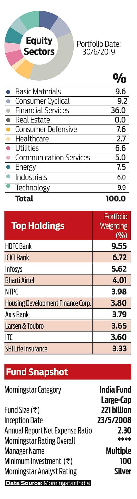 This true-to-label fund maintains about 80-90 per cent of assets in large-caps. Cash levels typically hover below five per cent, in line with the strategy to remain fully invested at all times.