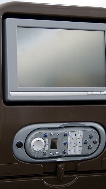 Sit upright in your seat and gently roll your shoulders forward in a circular motion, then reverse the direction to release tension and prevent stiffness.
