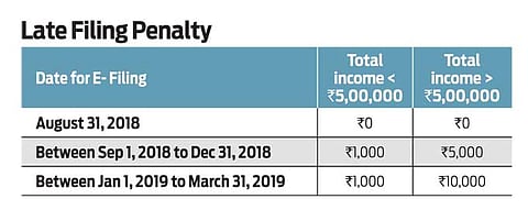 Finance ministry has extended the deadline to file your Income Tax Return (ITR) from July 31, 2018 to August 31, 2018, and post that you will be liable to pay penalty. (See the table: Late Filing Penalty)