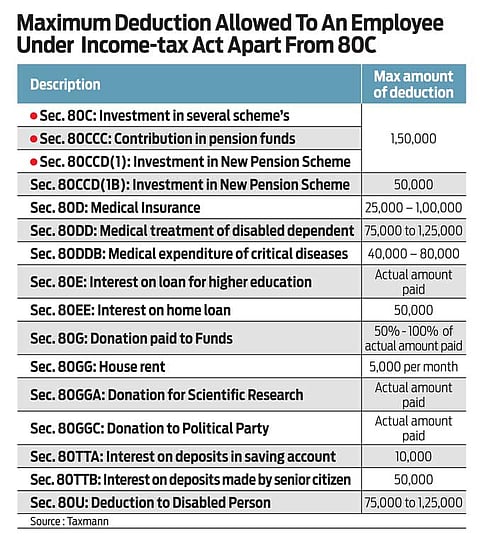 There are other deductions apart from 80C which investors can claim in order to lower the amount of tax payable. (See the table: Maximum deduction allowed to an employee under Income-tax Act)
