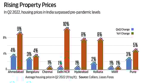 After a slump of more than two years, the real estate industry is looking up to brighter days again. According to Credai’s Housing Price-Tracker released in August 2022, housing prices in India surpassed the pre-pandemic levels in the second quarter of 2022. The average residential prices rose 5 per cent annually in this period.