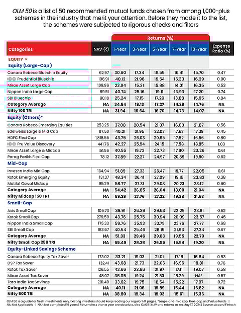 The Indian equity market is in an upbeat mood, and almost all the funds in the OLM 50 list are among the top five funds in their respective categories in terms of performance. As experts suggest a portfolio review regularly, here’s our annual review of the OLM 50 list. This time we are replacing three funds in the OLM 50 list