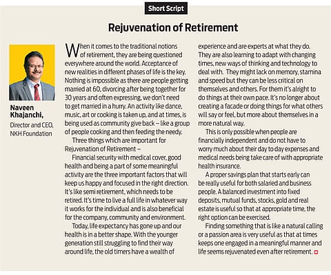No wonder, the concept of retirement has undergone a paradigm shift. Kolkata-based couple, Ayan Roy and Smitashree Chaudhuri, both of 34 years, feel retirement means spending time exclusively with family and friends and pursuing some specific goals (business or otherwise).