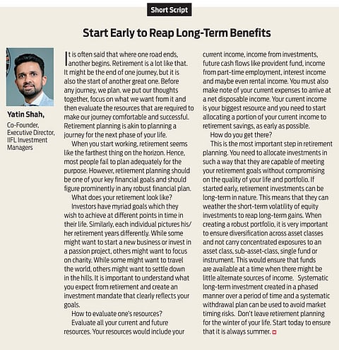 How much should one keep in equity, mutual funds or debt to yield maximum benefit? Dilshad Billimoria, Director and Certified Financial Planner, Dilzer, said during the accumulation phase, the asset allocation plays a crucial role in meeting a good retirement corpus. It is important that the risk profile and tolerance of an individual is undertaken and an asset allocation that matches the risk profile which is considered as part of the investment process. A regular review of the risk profile and asset allocation is where a prudent financial advisor provides expertise.