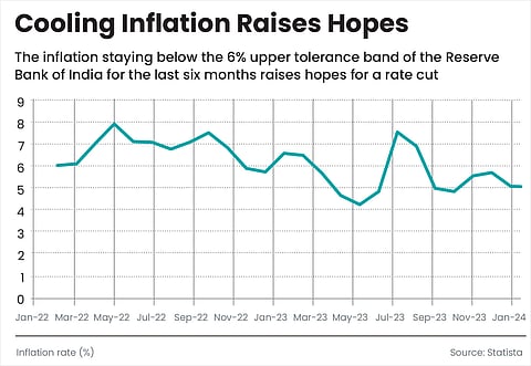 The tide seems to have turned in 2024. Many factors hint at a potential downward trajectory for Indian bond yields offering a buying opportunity for bond investors. The anticipated shift in the US Fed’s policy is a factor that can influence Indian bonds positively. Rate hikes have peaked, which signals an imminent rate-cutting cycle as inflation is cooling down with slower global growth (see Cooling Inflation Raises Hopes).