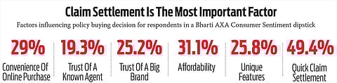 According to a dipstick by Bharti AXA, on some 2373 individuals, almost 50 per cent said claim settlement ratio was the most important deciding factor in buying policies, followed by prices.