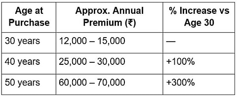 At 40: The same cover could cost Rs 25,000–30,000 annually, nearly double.