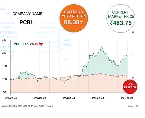 PCBL, previously known as Phillips Carbon Black, is the leading manufacturer of carbon black, which is used as a reinforcing material in tyres. PCBL also derives 11 per cent of its sales volume from specialty carbon black, which fetches high margins and finds application in paints and plastics, among others. PCBL is India’s largest and the world’s seventh-largest carbon black manufacturer with an installed capacity of 770,000 tonnes.