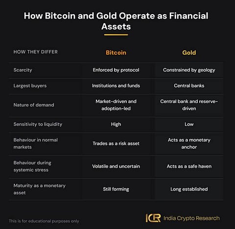 Gold shines when people lose faith in currencies, institutions, or the money system. Bitcoin reacts more to market shifts.