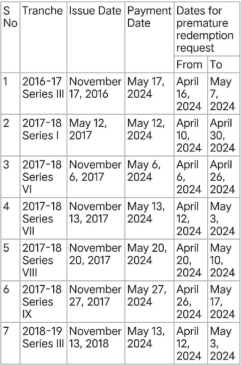 The Reserve Bank of India (RBI) had disclosed premature redemption details for seven Sovereign Gold Bonds (SGBs) slated for redemption in May 2024. SGBs allow subscribers to exit the scheme prematurely on the coupon payment date after on completion of five years from purchase, though the tenor of the bond is 8 years. Today, on May 6, 2024, Series VI of SGB 2017-18 is due for premature redemption, with a redemption price set at Rs 7,141. The redemption price is based on the simple average of the closing gold price of 999 purity over the previous three business days from the redemption date, as published by the India Bullion and Jewellers Association Ltd (IBJA).