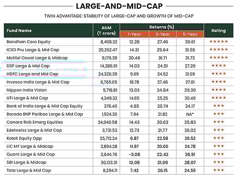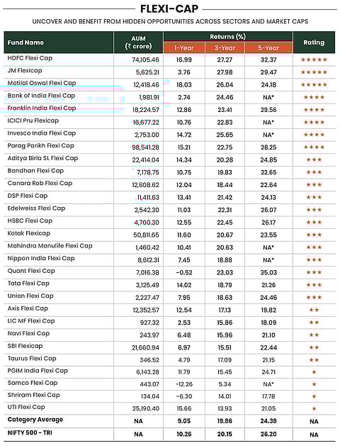 This led to the higher divergence in performance across all categories of equity funds. In the large-cap space, the difference in the best and worst performing—DSP Large Cap with 16.75 per cent and JM Large Cap with 1.09 per cent—is 15. 67 per cent. The highest divergence was seen in the flexi cap category (30 per cent). The best (Motilal Oswal Flexi Cap) gave 18.03 per cent, while the worst (Samaco Flexi cap) fell 12.26 per cent. In all, 18 out of 29 schemes selected managed to outperform the Nifty 500-TRI Index.