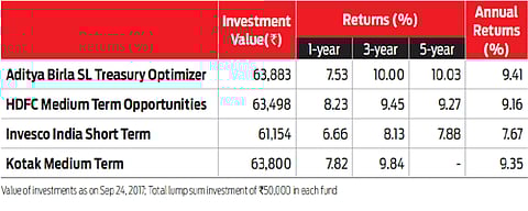 These four funds are highly recommended substitute to bank deposits, where the interest rates have been falling steadily. Tax efficiency is the hallmark of these funds and so is their high liquidity, which allows you to redeem your investment in these funds in very short time. Not only do they tend to earn better returns, they are as close as bank deposits when it comes to liquidity. Invest in these funds keeping in mind shorter time duration of more than a year and going up to a few years, at best, when you invest in these funds.