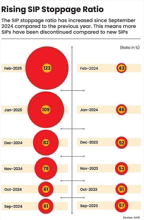 In the last five years, systematic investment plans (SIPs) have emerged as a key driver of growth in mutual funds, its value more than tripling from Rs 8,055 crore in March 2019 to Rs 25,999 crore in February 2025, according to data from the Association of Mutual Funds in India (Amfi). But data also shows that the trend seems to have reversed in the last six months, along with the market movement.