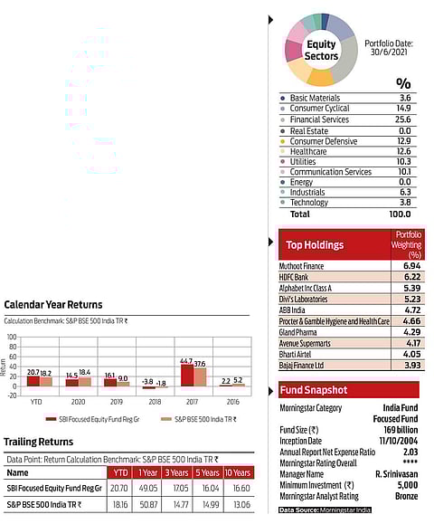 “SBI Focused Equity is a benchmark-agnostic concentrated high-conviction strategy that aims to invest in stocks that meet the internal threshold in terms of the compounded annual growth rate and consistent return on capital over a horizon of three to five years. The strategy is managed by head of equity R. Srinivasan, who is a veteran at the AMC. Srinivasan is backed by a stable in-house process, and an experienced analyst team that has been trained in-house.