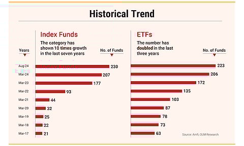 Over the last 5-10 years, passive funds have surged in size and popularity in India as well as in the international markets like the US. In the US, the assets in passive funds has grown four times in the past decade from $3.2 trillion at the end of 2013 to $15 trillion at the end of 2023. Says Anil Ghelani, CFA, head – passive income and products, DSP Mutual Fund: “With passive funds witnessing positive flows consistently over the past decade, for the first time in history of the US mutual fund industry, the assets under management (AUM) of passive funds has crossed that of active funds.”