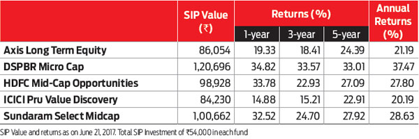 If taking risks with investing is up your street, the following five funds are what you should consider. They will post very high returns, but also run the risk of falling sharply when the stock markets move adversely. Investments by these funds are mostly into mid and small cap companies, that have the potential to become the much larger companies in future. Do track the performance of these funds closely, because they do take tactical calls based on market and economic developments which impact their performance immensely.