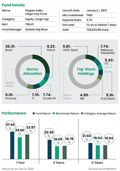 The surge in valuation within mid- and small-cap segments has sparked caution among investors, leading them to tilt their portfolio towards large-cap funds, which are considered relatively safer. Also, if you are new to equity investing, you can start investing with large-cap funds. Among these, Nippon India Large Cap Fund would be a good choice, whether you are a new or an existing investor. It has demonstrated consistent performance across market cycles, coupled with consistent management team. Fund manager Sailesh Raj Bhan has been at the helm since 2007.