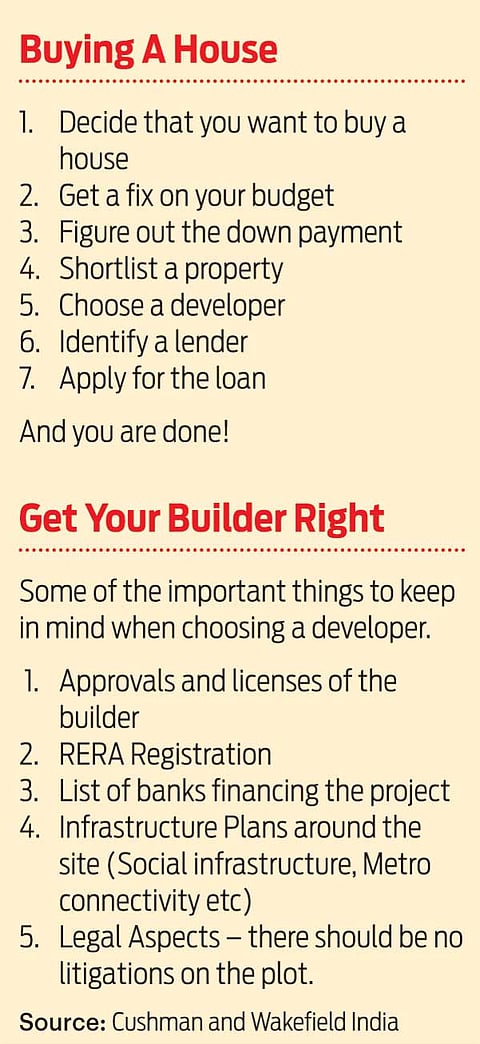 With the budget sorted, the next step is to figure out the down payment. Pai said that it is very important to strike a fine balance while deciding the budget for down payment and EMI. On an average, home buyers have to keep aside 20-25 per cent of the price of the house for down payment, besides the amount for registration. “The best way to save for down payment is by building your own savings corpus, borrowing against insurance policies, PPF or a family loan. While there are benefits of a higher down payment like lower interest rates, lower processing costs and insurance premium, it also comes with challenges of lower liquidity during an emergency or a possible cash crunch for initial expenses such as home interiors. So, it is always advisable for home buyers to consider the budget, keeping in mind the down-payment and the amount for registration,” he adds.