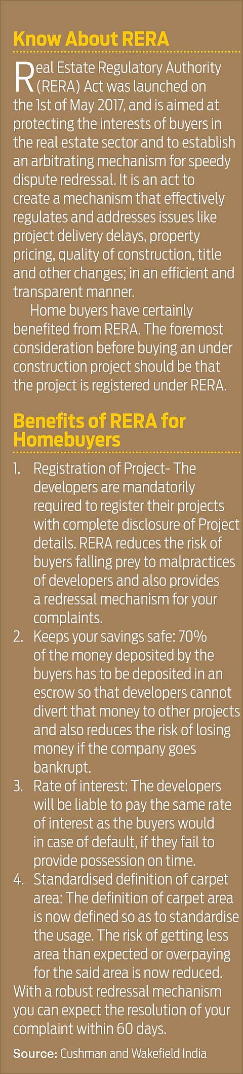 Another very important decision to make is the choice of the developer. “How a project will turn out and how well it will be constructed, depends on who is constructing the project. It is always advisable to buy from reputed developers,” advised Pai. He further added that such properties will come at a premium due to good construction quality and they also carry minimum risk of missing deadlines of timely delivery. Home buyers can also get feedback about developers from real estate portals and social media communities.