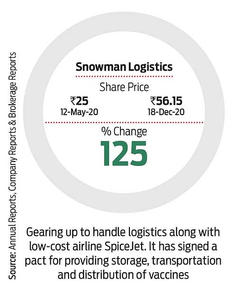 Akshay Sakaria, a chartered accountant, has high hopes of buying listed stocks in the logistics sector, as he believes they will gain traction with COVID-19 vaccination rollout. Recently, these shares witnessed massive gains. An analysis of 11 key stocks shows their market prices zoomed from 45 per cent (Container Corporation Of India) to 125 per cent (Snowman Logistics) between their lowest points this year in March-April and December 18.