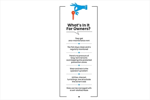 Under this arrangement, you can lease your house to such a company or operator, which will furnish it, and list it on portals for short-term sub-letting and pay you a fee.