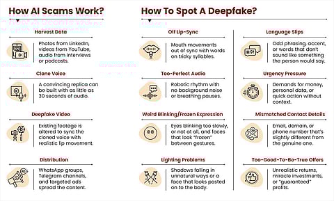 AI can read your face, mimic your voice, and rewrite your words in seconds. A few seconds of audio from a WhatsApp note can be used to clone your voice; an old clip from a conference reshaped into a high-definition video of you endorsing a Ponzi scheme, and a stolen profile photo to advertise a fake wealth advisory site. But these aren’t crude fakes: the lip-sync is near perfect, the body language convincing.