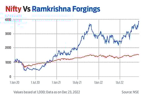 Ramkrishna Forgings is a three-decade-old company that has achieved commendable progress over the years and has now become one of the major players in the fragmented forgings industry. The company gave the best-in-class performance over the last decade with a compounded annual growth rate (CAGR) of around 16 per cent in revenue and 24 per cent in profit, with a solid 20 per cent-plus return on equity (ROE) currently.