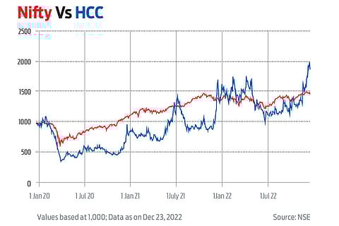 In the September 2022 quarter, the company recorded consolidated sales of around Rs 2,500 crore with an Ebitda margin of 23 per cent and a net profit of Rs 319 crore. With around Rs 5,300 crore of awards and claims to be realised and the likely sale of BOT and other assets, as also reduced interest outgo due to debt restructuring, the company is set to achieve a remarkable turnaround in its fortunes.