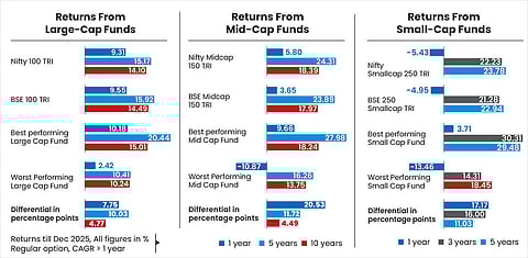 You would have come across computation charts showing the differential between the expense ratios of direct plans and regular plans of mutual Funds, and how this differential compounds over the years and impacts your portfolio performance. The bigger the size of your portfolio, the higher is the compounded impact over the years. Yes, these computations are mathematically correct. However, things have to be seen in perspective. Choosing underperforming funds can change the picture.