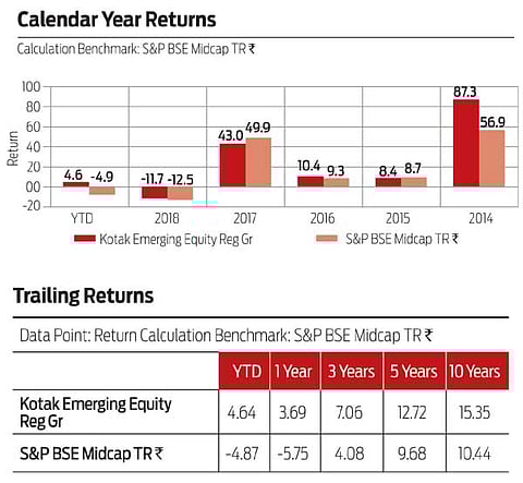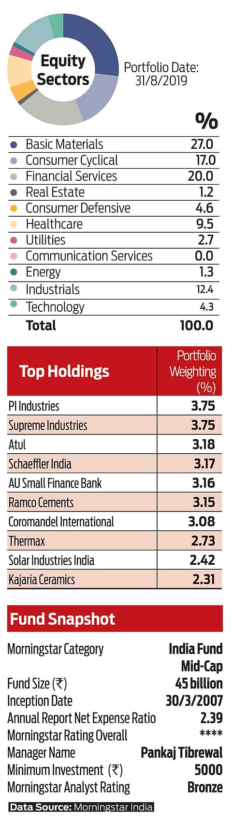 The fund typically holds around 15 to 20 per cent in large cap names and tends to hold on to mid-cap stocks that grow into large caps, provided that the manager sees an upside in these names. His style of investing leads to a portfolio with a slightly long tail. In terms of the fund’s performance, it has consistently remained in the top two quartiles versus its peers. We think that this fund is a good investment for investors who prefer a consistent set of returns.