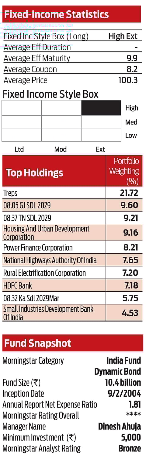 It primarily invests in government securities, state development loans, public sector undertaking AAA bonds, and a few non-banking financial companies with quality names.