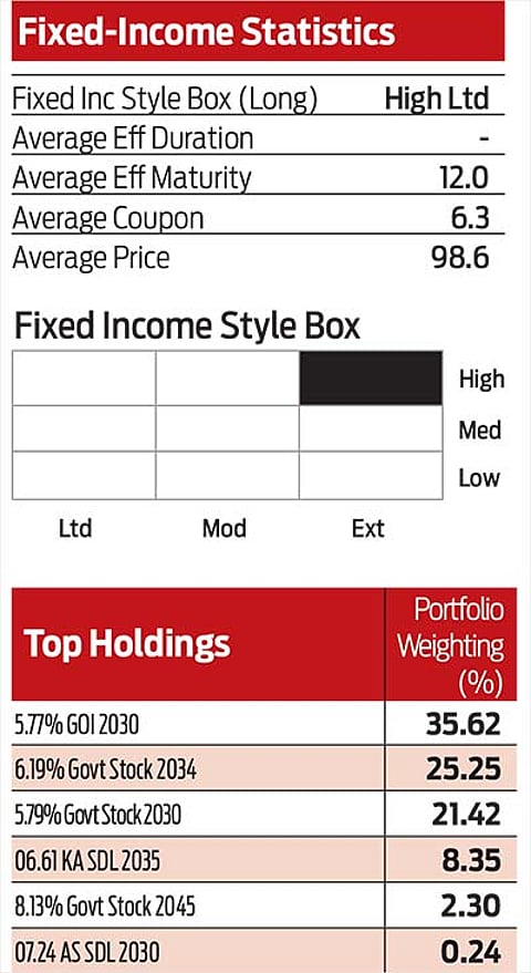 The investment strategy is based on the team’s research focussed on taking duration calls by investing in a combination of government securities and state development loans. Macroeconomic research is primarily driven by three fund managers, and their views tend to resonate across the fund house. They track open market operations, trading volumes, broader market interest-rate directional views, and peer positioning. The average maturity on the gilt fund can fluctuate significantly and is positioned in line with Chopra’s view of the interest-rate environment. From a macroeconomic perspective, the manager prefers to invest in the most liquid papers. The focus on risk avoidance seems to be much higher compared to investments for generating top-quartile performance. The strategy typically has less than 10 holdings, and execution is largely influenced by the team’s ability to take the right macro calls and position across yield curves. Execution of this strategy has remained above par and is reflected in the fund’s performance profile.