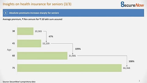 Kapil Mehta, co-founder, SecureNow says, "Senior citizens take a longer time to intimate claims to the insurers, have a higher hospitalisation stay, incur higher treatment costs, and have slightly higher insurance deductions. They also pay much more for insurance, someone aged 75 has to incur a premium six times that of someone aged 30. There is an opportunity to support seniors in selecting the right insurances and in supporting them through claims.”