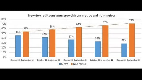 The report highlights that 69 per cent of the new self-monitoring consumers with a CIBIL score of over 730 were from the non-metro areas between October 2021 and September 2022.