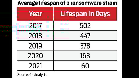 Ransomware activities have grown exponentially in 2021, with the average ransomware payment size in 2021 being five times the figure in 2019, finds a recent research report by Chainalysis, a blockchain data platform. The data shows that the average ransomware size grew from $25,000 in 2009 to $118,000 in 2021. The report mentions that ransomware activities through cryptos have been increasing since 2018.