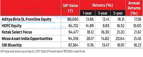 Investors who can stomach some risk and have a five year investment time frame can choose funds from this list, as the funds in this portfolio seek growth with a dash of risk. The selected funds have stood the test of times over different market cycles, which make them ideal for investors who are open to a little risk as long as the growth is commensurate to that risk. The sizeable assets managed by each of the funds here stands testimony to its ability and investor confidence in them, which you too should take a cue from when investing.