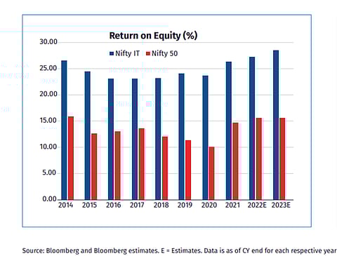Table showing the return on equity of Nifty IT and Nifty 50 index.