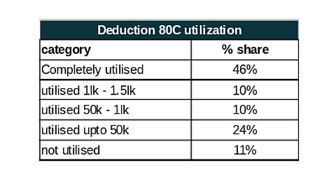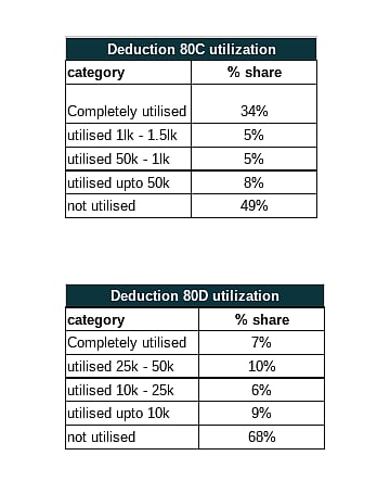 Table Showing Percentage of People Using 80C and 80D deduction limits. Source: Clear