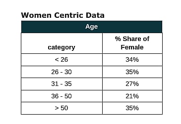 Table showing percentage distribution of women who filed ITRs by age. Source: Clear
