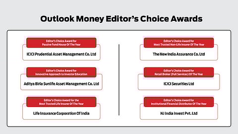 The Outlook Money Awards go to six winners across categories. Six other companies have been chosen in the Editor’s Choice Awards section for their exemplary contributions in their fields.