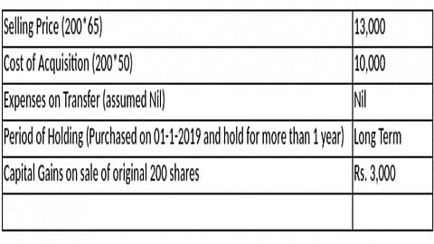 You purchased 200 shares at Rs 50 each on January 1, 2019, so the total acquisition cost is Rs 10,000, and sold them on October 1, 2020, for Rs 65 each after one year and eight months. Hence, a long-term capital gains tax will apply.