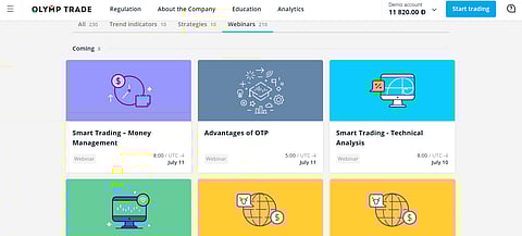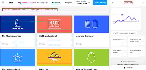 Olymp Trade’s educational suite has an ever-growing number of different strategies to choose from. Depending on your method of investing and goals there are different styles you may be more attracted to. The site’s built-in assistant helps explain how to execute the strategies simply.