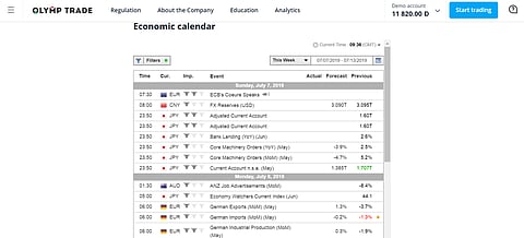 Different calendars have different methods of displaying the importance of an event. Olymp Trade’s calendar uses bull’s heads to show how likely an event is to have an impact. One bull’s head signifies it is not too important whereas three indicates it is likely to influence trading.