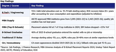The degrees Indian families are sacrificing the most for - engineering, MBA, and professional qualifications - are barely delivering the promised returns.