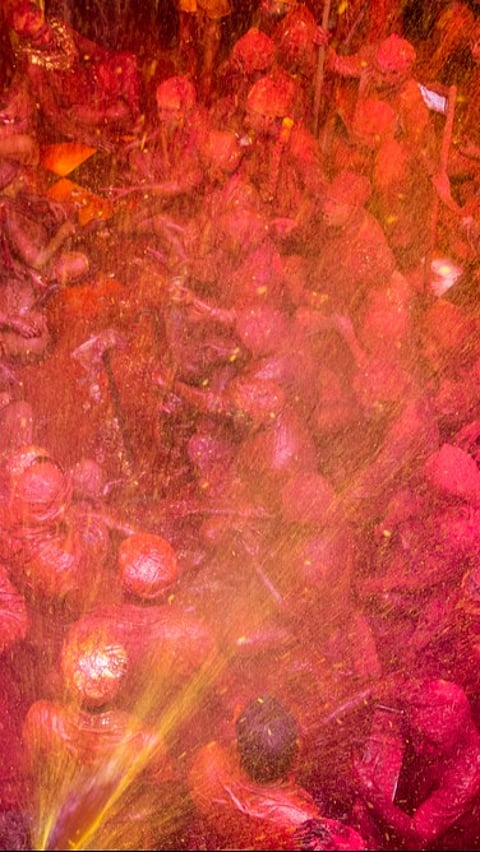 Witness the legendary “Lathmar Holi,” where women playfully chase men with bamboo sticks dipped in colour, reenacting the playful banter between Radha and Krishna.