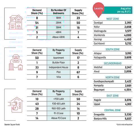 The ‘City of Nizams’ saw 14,600 new launches of residential units in Q1, 2023, slightly down from 15,100 units launched in Q4, 2022. West Hyderabad saw the most launches at 5,345 units, followed by South Hyderabad at 3,800 units. The real estate market in Hyderabad has shown incredible growth despite economic slowdown. It has been one of the most sought after destinations for homebuyers and big investors, backed by the demand from buoyant IT/Tech workforce. About 43 per cent of the demand was for properties in the range of Rs 60 lakh to Rs 1 crore. Size-wise, 54 per cent was for 2BHK and 31 per cent for 3BHK and above. The supply of premium properties was noted in Kondapur, Miyapur, and Adibatla because of good infrastructure and proximity to key employment hubs.