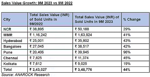 In 2023, the Indian residential market was unstoppable and broke all previous records, with quarterly records being set in housing sales, a report by ANAROCK Research revealed. The total sales value of the sold housing stock has also increased marginally. There is very strong sales momentum this year and even before Q4 2023 sales figures are tallied, the total value of sold homes in 2023 has surpassed Rs 4.5 lakh crore which is 38% more than the total sales value of all of 2022. Last year, the sale of homes was valued at Rs 3.27 lakh crore.
